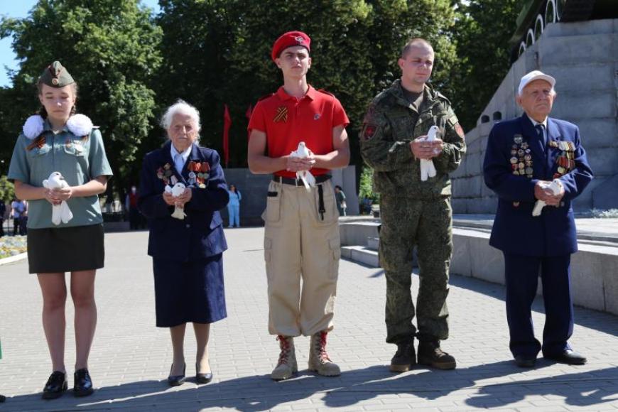 Память погибших на фронтах Великой Отечественной войны почтили минутой молчания. Горожане, в числе которых были ветеран Великой Отечественной войны Абрам Миркин, орловская труженица Искра Сидоренко, председатель межрегионального поискового объединения «Костер» Николай Красиков, выпустили в небо живых голубей.