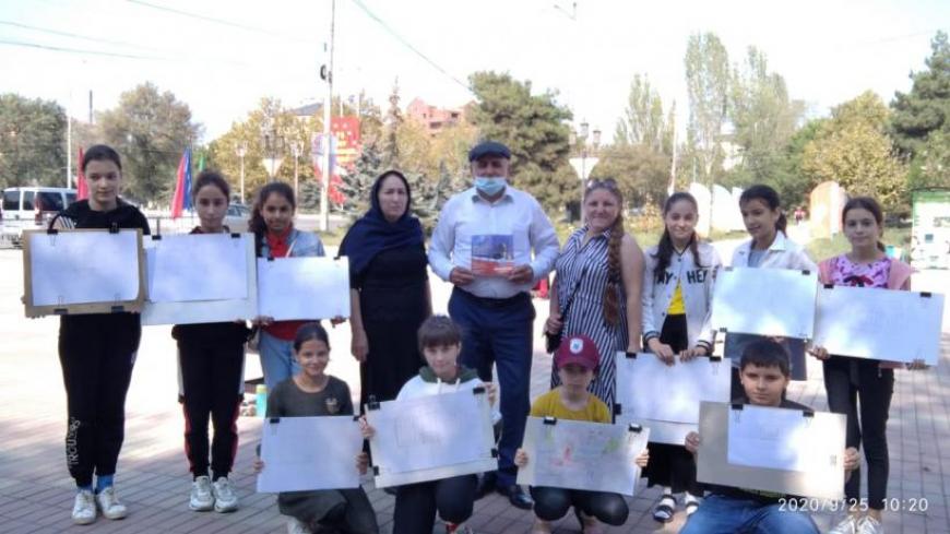 Учитель по изобразительному искусству Раисат Магомедова с учениками 6-7 классов и ветераном Султаном Даитбековым организовали конкурс по рисунку «Мой город – Избербаш».