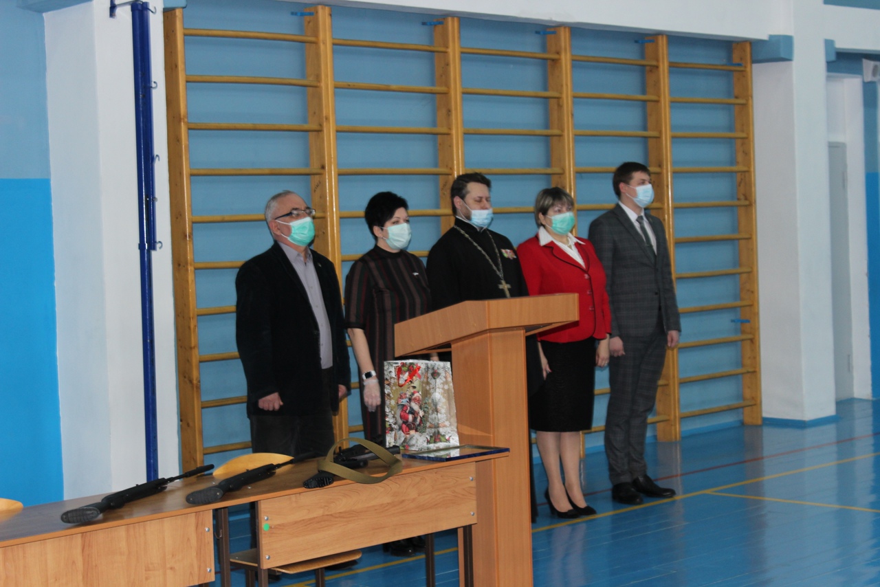 В торжественной церемонии мероприятия приняли участие депутат Государственной Думы Валентина Миронова, председатель Совета БРОО поискового объединения «Возрождение» Алексей Екимцев, начальник штаба регионального отделения «Юнармии» Сергей Васютичев, председатель Совета Брянского регионального отделения Всероссийской общественной организации ветеранов «БОЕВОЕ БРАТСТВО» Александр Деменков, заведующий отделом по взаимодействию с Вооруженными силами и правоохранительными органами Брянской епархии иерей Михаил Агешин, педагоги и учащиеся школы.