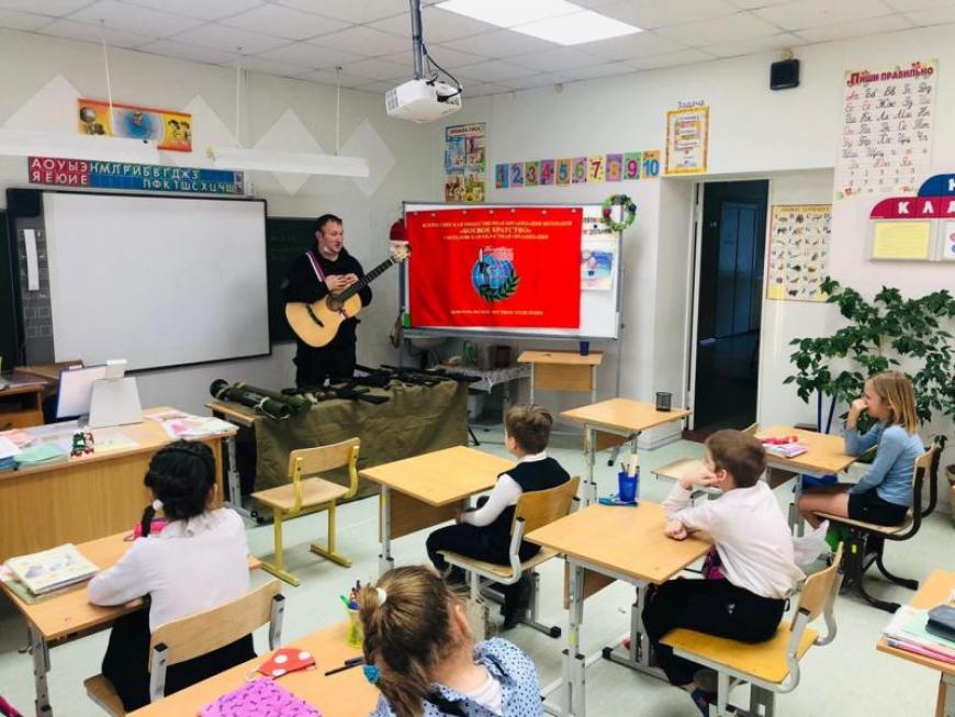 9 декабря 2020 года руководитель Новоуральского местного отделения Свердловского областного «БОЕВОГО БРАТСТВА», социальный педагог школы № 53 Александр Бушманов провел для учащихся 3-х и 4-х классов уроки мужества, посвященные Дню Героев Отечества.