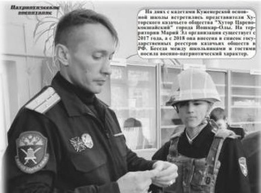 28 января Атаман казаков Марий Эл из общества «Хутор Царевококшайский» член Марийского «БОЕВОГО БРАТСТВА» подъесаул Максим Кулешов, встретился с кадетами посёлка Куженер.