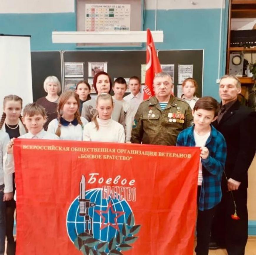 Руководитель Псковского областного отделения «БОЕВОГО БРАТСТВА» Александр Кривотулов 17 февраля провел урок мужества с учащимися одной из местной школ.