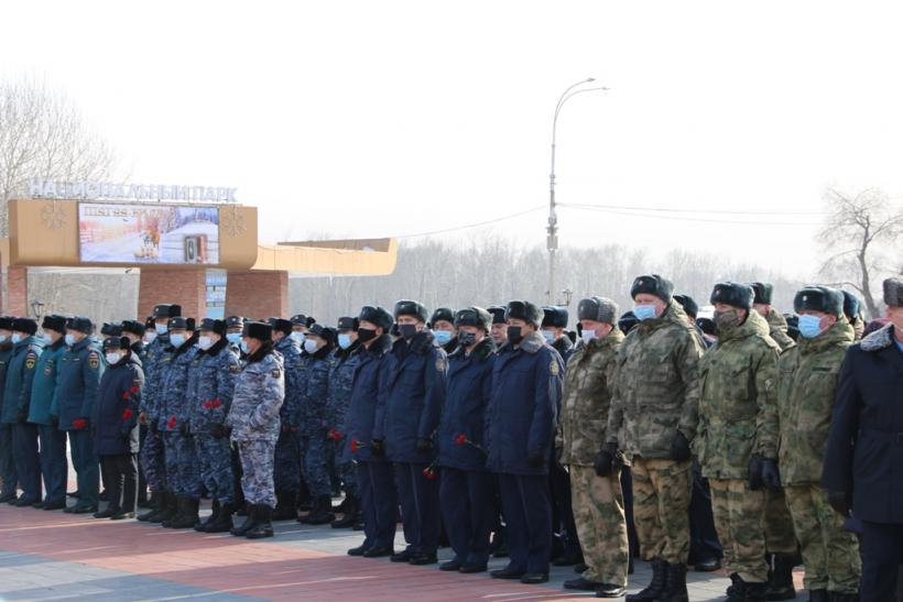 После минуты молчания в память о погибших защитниках Отечества состоялась церемония возложения венков и цветов у Вечного огня.