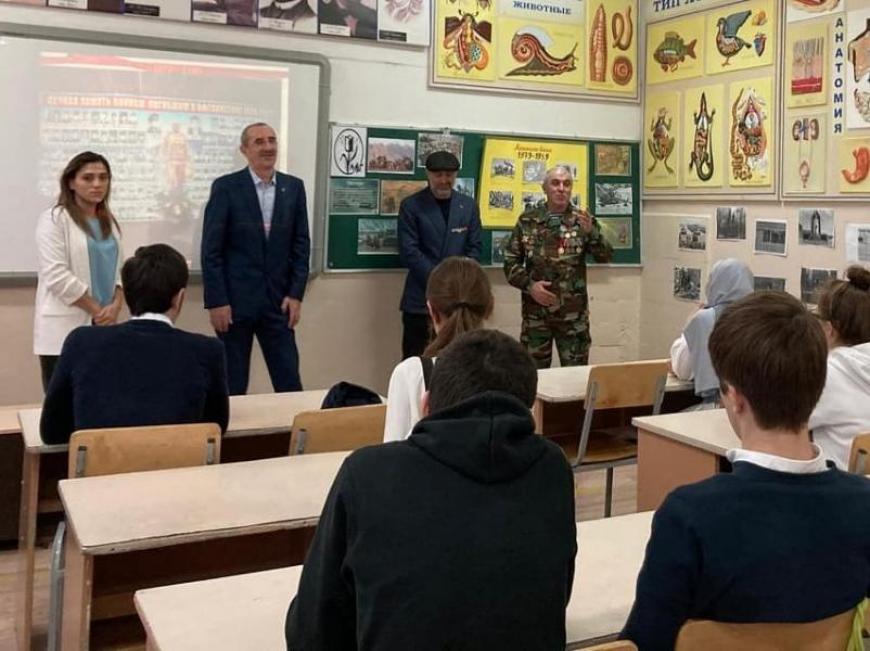 Участники Афганских событий Якуб Магомедарип, Шамиль Гусейнов и Али Рабаданов пришли в гости в «Каспийскую гимназию», которая является одной из первых гимназий Республики Дагестан для проведения урока мужества.