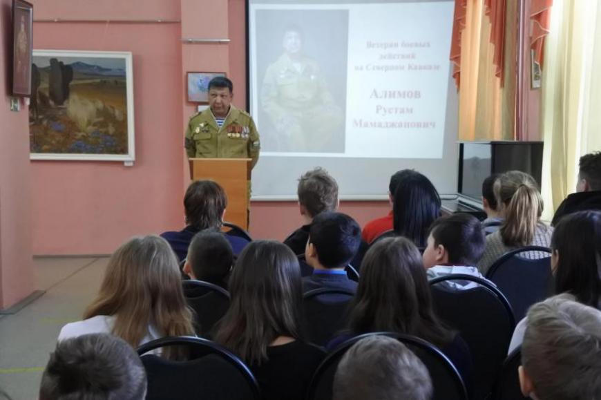 Юноши и девушки осмотрели работы и пообщались с Рустамом Алимовым. Он поделился с ребятами воспоминаниями о годах службы. Рассказал об участниках фотовыставки. Вместе они порассуждали на тему «Отечество, патриотизм, мужество, героизм».