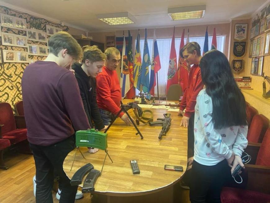 «Классный руководитель Галина Яшева привела детей для осмотра экспозиции, собранной ветеранами боевых действий, в том числе оружие и мины», — уточняют ветераны.