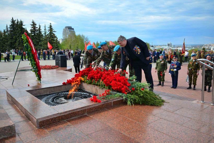 На праздник члены ветеранских организаций пришли в военной форме с боевыми и другими наградами. Возложения цветов провели совместно с администрацией Чувашской Республики и города Чебоксары. Колонну ветеранов боевых действий возглавил руководитель регионального «БОЕВОГО БРАТСТВА», кавалер ордена Красной Звезды Игорь Кашаев и знаменные группы от каждой организации – кавалер двух орденов Красной Звезды полковник запаса Осипов А.П., кавалер ордена Красной Звезды капитан запаса Шепелев И.Г., кавалер ордена Красной Звезды старшина запаса Григорьев Ю.В. Почтили минутой молчания погибших воинов в Великой Отечественной войне, в Афганистане и других военных конфликтах.