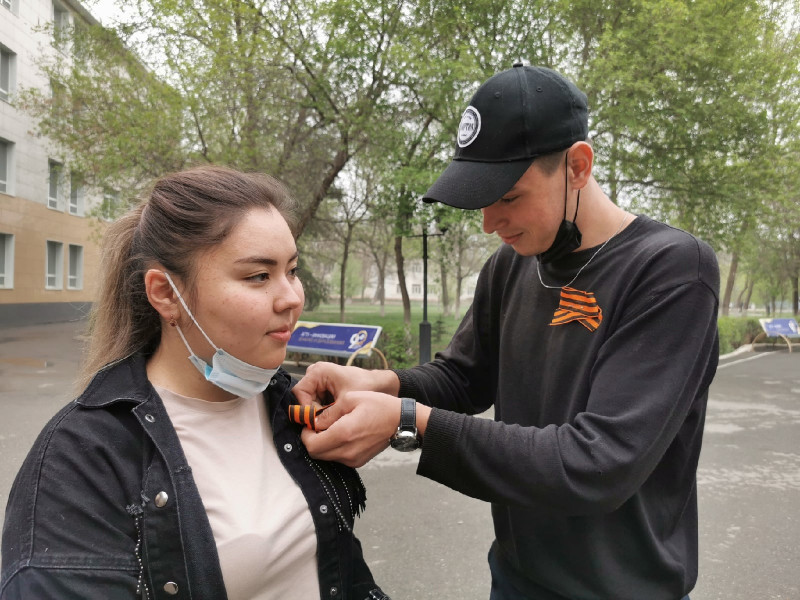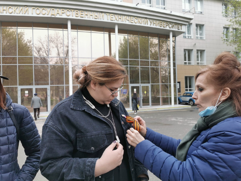 Поисковики и студенты Астраханского государственного технического университете провели акцию «Георгиевская ленточка», старт которой был дан у главного корпуса АГТУ. Руководитель и бойцы поискового отряда «Подвиг» раздавали ленты, рассказывали участникам акции о символе памяти — о Победе в Великой Отечественной войне!
