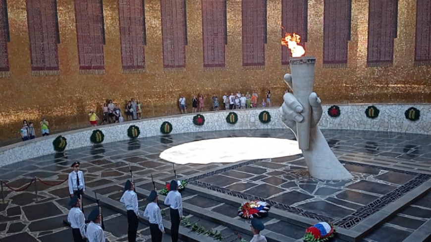 Они возложили цветы к Вечному огню в мемориальном комплексе Мамаев Курган по пути в город-герой Керчь.
