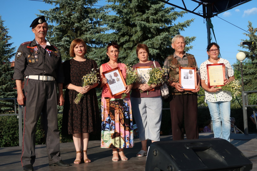 Наградные листы вручали: председатель районного Совета ветеранов Таушканов П. А. и Устюжанин М.М. Для гостей и односельчан прошёл мини-концерт. 8 июля на городском мероприятии председатель районного Совета ветеранов Павел Таушканов вручил наградные листы кавалеров ордена Славы близким родственникам бойцов Красной Армии Литвиненко Ивана Кондратьевича, Поросенкова Владимира Никифоровича, Прокопьева Сергея Степановича и Латышева Аркадия Павловича.