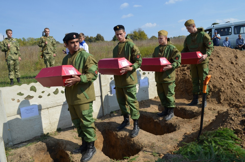 Член Орловского «БОЕВОГО БРАТСТВА» Евгений Кружков вместе со студентами Орловского реставрационно-строительного техникума приняли участие в перезахоронении останков бойцов.
