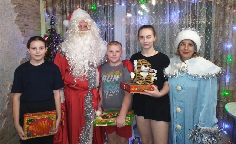 В завершение праздничного мероприятия Дед Мороз (руководитель Алтайского регионального отделения «БОЕВОГО БРАТСТВА» Вячеслав Кравченко) и Снегурочка (Ольга Орлова) поздравили всех с наступающим Новым годом и вручили детям сладкие губернаторские подарки и подарки от «БОЕВОГО БРАТСТВА».