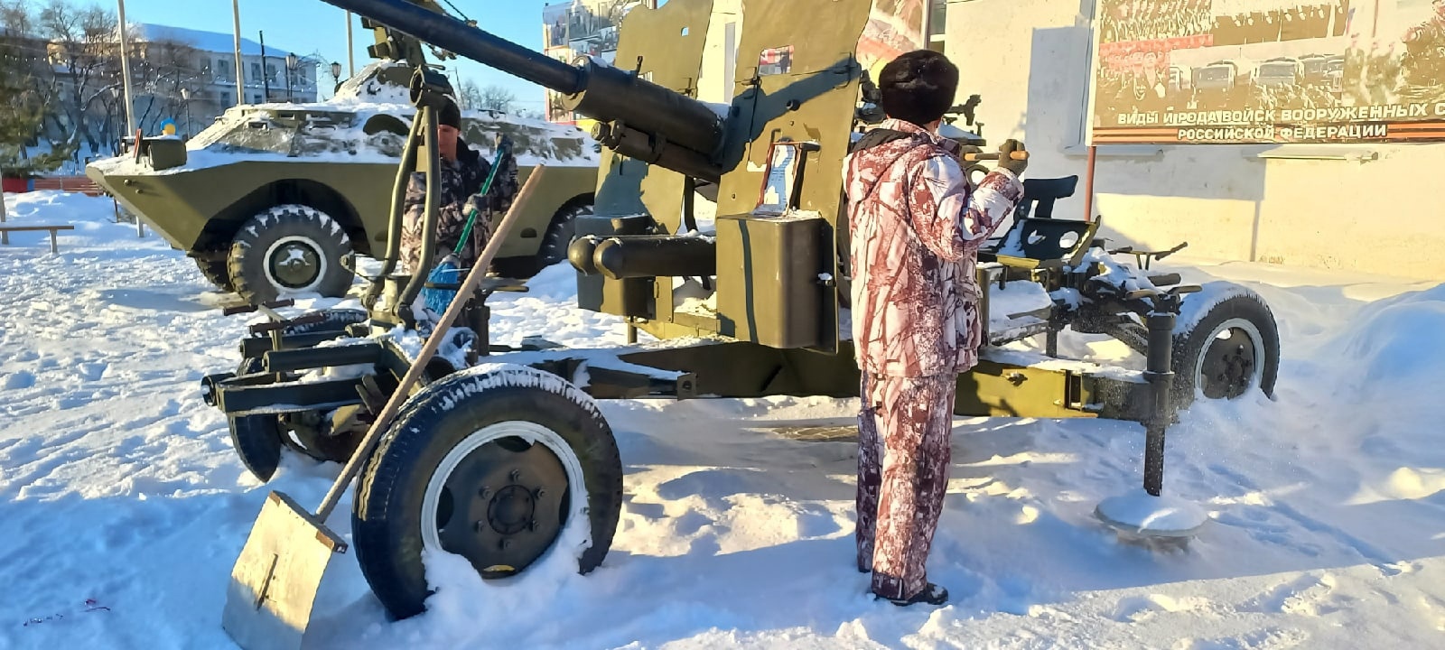«Круглый год казаки следят за экспонатами. Совместно с председателем районного Совета ветеранов Павлом Таушкановым была проведена уборка снега возле военной техники и по территории аллеи», — сообщают из Курганской области.