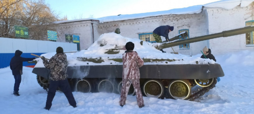 Члены «БОЕВОГО БРАТСТВА« Катайского района Курганской области убрали снег с танков.