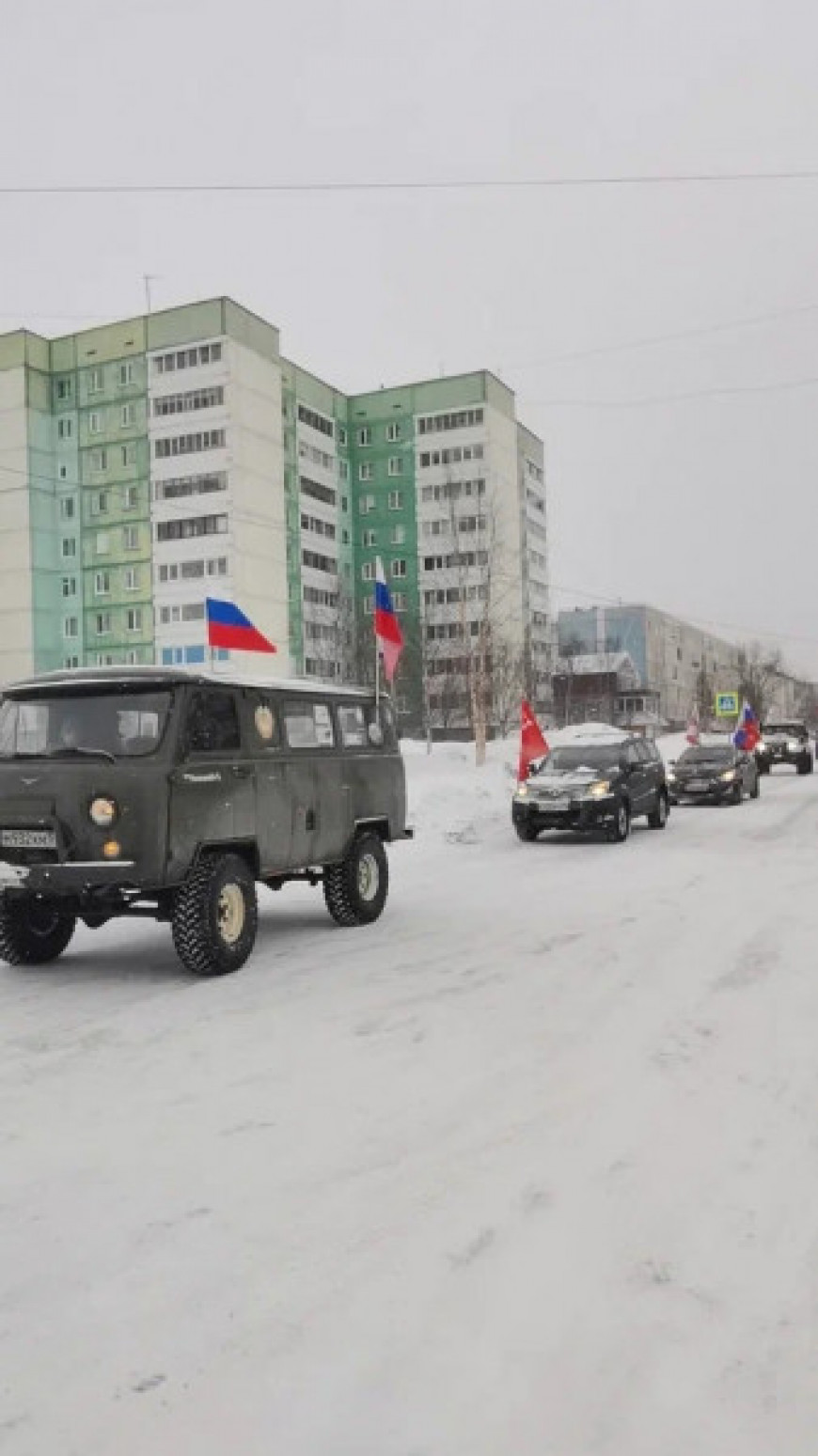 6 марта местное отделение «БОЕВОГО БРАТСТВА» города Полярные Зори, союз ветеранов локальных войн «Шурави» и ВПК «Юный десантник», а также автолюбители, которым небезразлична спецоперация на Украине, провели автопробег.