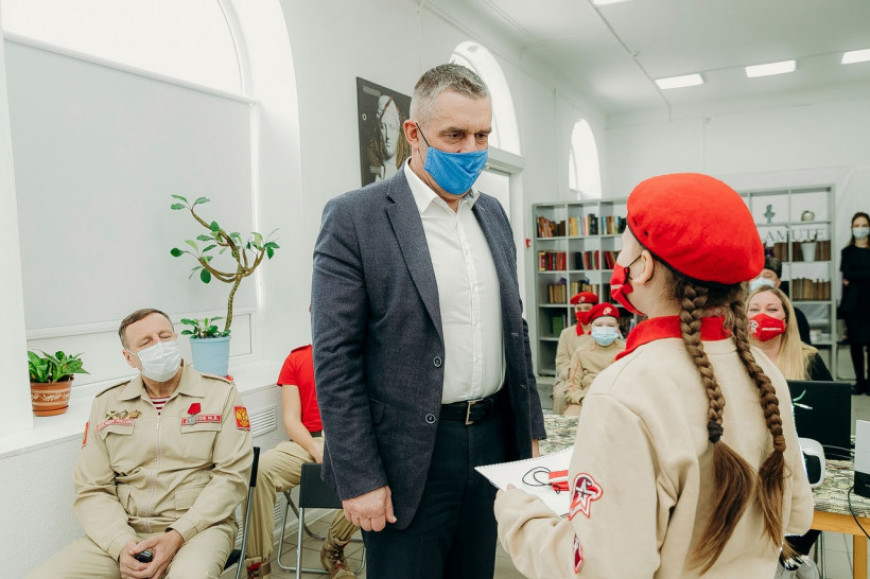 Начальник городского штаба «Юнармии», ветеран Карельского республиканского отделения «БОЕВОГО БРАТСТВА» Алла Беляева познакомила Владимира Любарского с новым образовательным пространством.