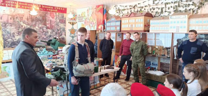 Ветераны продемонстрировали школьникам Тарской гимназии №1 выставку боевого арсенала и поговорили с ними о подвиге десантников 6-й роты в бою за высоту 776.