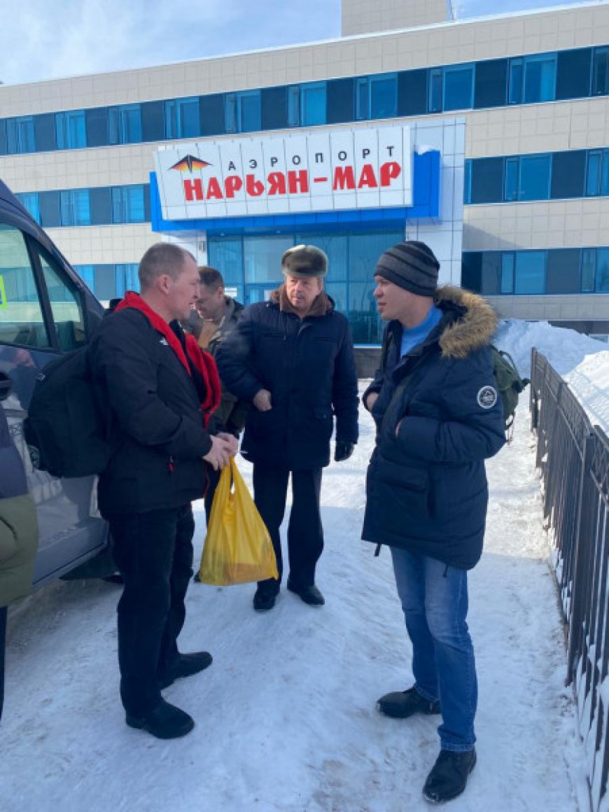 В аэропорт приехал проводить добровольцев председатель Собрания депутатов Ненецкого округа Александр Лутовинов, он выразил слова благодарности и пожелал успехов и удачи в борьбе с нацизмом.