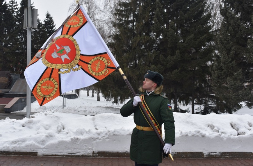 Торжественная церемония вручения Боевого знамени состоялась на площади Победы у мемориала Славы. Для участия в этом особом ритуале в Барнаул прибыл заместитель командующего 15-й армией ВКС особого назначения генерал-майор Андрей Калюта.