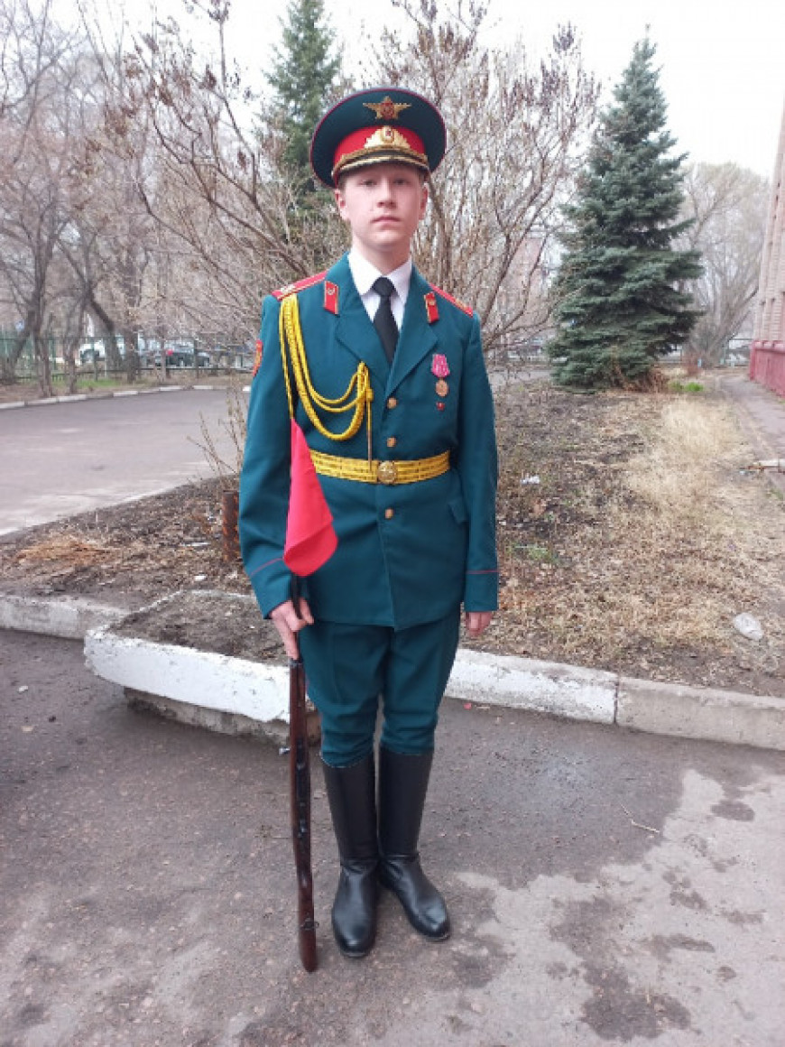 Воспитанник ВСПЦ «Характер» Владислав Шаповалов продемонстрировал великолепное владение оружием, показав дефиле с карабином СКС.
