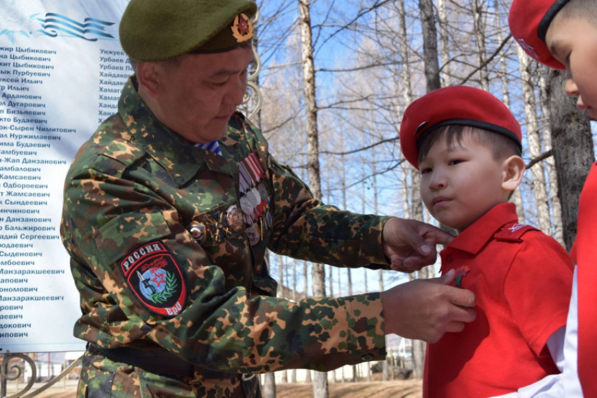 В парке Победы села Орлик Окинского района Бурятии юнармейцам вручили значки акции «Красная гвоздика». Значки вручали ветераны боевых действий из «БОЕВОГО БРАТСТВА» Бурятии Сидор Гомбоев и Александр Булатов.