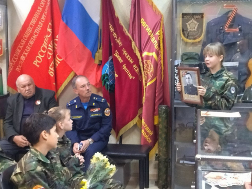 Провели два урока мужества «По зову сердца и Отчизны» для учеников 7А и 7Б классов школы №79. Сотрудники Центра ветеранов боевых действий провели урок мужества «Страницы воинской доблести» с студентами 1 курса Ростовского промышленно-полиграфического техникума. С студентами 1 курса ПУ-5 проведен урок «Патриотизм, верность воинскому долгу — основа достойного служения Отечеству».