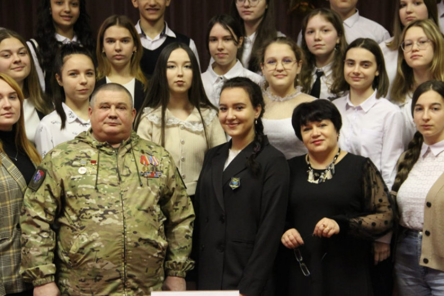 Его провел ветеран боевых действий в Афганистане Виктор Шевляков, который рассказал о своей службе. Обсуждали причины и ход Специальной военной операции, ребята задали ветерану множество вопросов. Ученики и педагоги поблагодарили Виктора Шевлякова за интересную беседу и пригласили его в гости на 23 февраля.