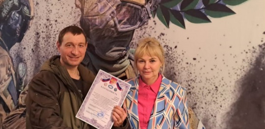 Председатель исполкома Тамбовского отделения «БОЕВОГО БРАТСТВА» Марина Почечуева вручила Дмитрию Алмаеву благодарность за подписью руководителей сразу областного отделения «БОЕВОГО БРАТСТВА» и регионального отделения ДОСААФ.