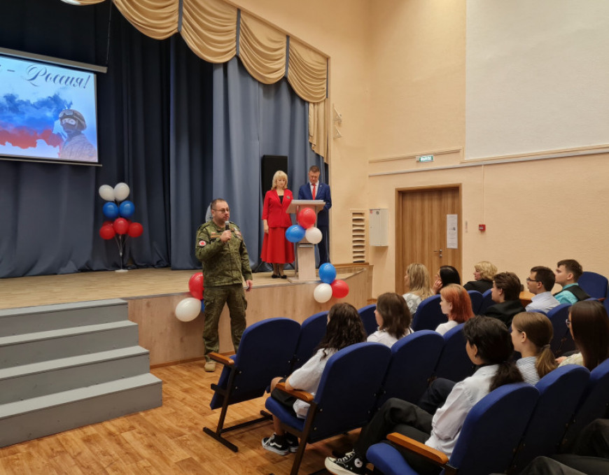 В мероприятии участвовали члены Норильского местного отделения «БОЕВОГО БРАТСТВА» Валерий Шабурин и Олег Шалдаев. Ветераны призвали всех помнить, чтить и беречь историю нашей страны, гордиться своей Родиной. Валерий Шабурин рассказал о гуманитарных конвоях в зону Специальной военной операции, в которых лично участвовал, поделился своими впечатлениями. Участник СВО Олег Шалдаев рассказал о мужестве и героизме военнослужащих при защите новых регионов, поблагодарил школу за письма и рисунки, адресованные бойцам. Педагоги и школьники приготовили праздничный концерт, дети читали стихи, исполнили патриотические песни.