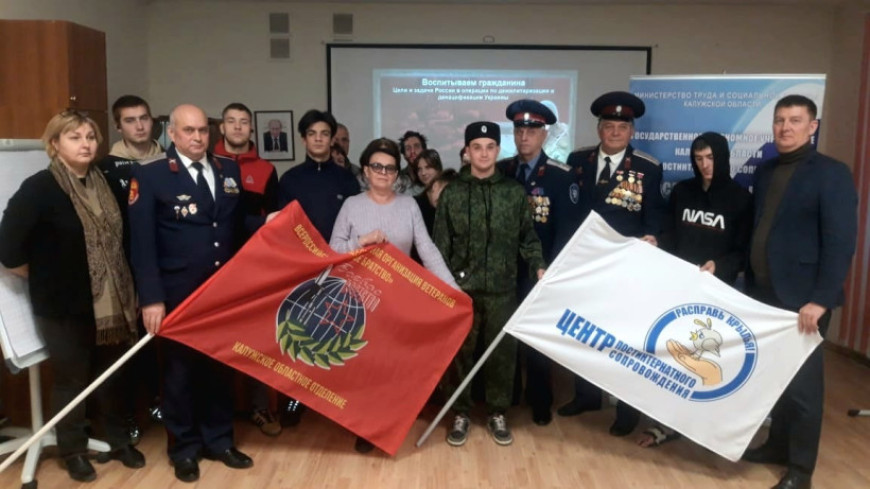Организовали его активисты Калужского «БОЕВОГО БРАТСТВА» Иван Головид, Олег Глущук. Ветераны выступили перед ребятами с обзором и оценкой военно-политической обстановки в мире,  рассказали о Специальной военной операции, о мужестве наших солдат и офицеров, призвали детей быть готовыми, если потребуется, выступить на защиту своего Отечества. Также ветераны напутствовали выпускника центра молодого казака Георгия Р., который отправляется служить в составе ВДВ в зону СВО.