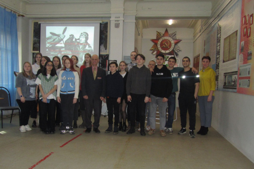 Урок мужества со студентами индустриально-педагогического колледжа провел заместитель председателя правления Калужского городского отделения «БОЕВОГО БРАТСТВА» Александр Трусевич. Ветеран рассказал студентам о жизненном и боевом пути прославленного аса, его службе в Калуге, продемонстрировал документальные кадры об Александре Покрышкине. В мероприятии участвовали 25 человек.