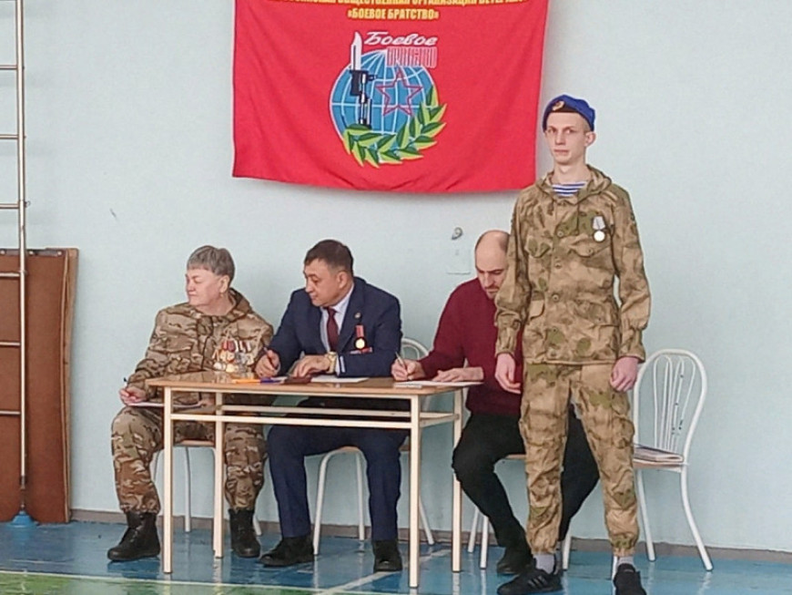 Председатель правления первичного отделения Омского «БОЕВОГО БРАТСТВА» Кировского округа города Омска Тахир Нанигеев и участник боевых действий в Афганистане Нина Рябченко были в составе жюри школьного конкурса смотра строя и песни.