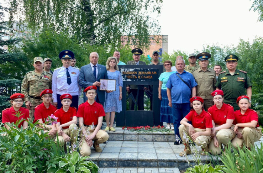 Ветераны боевых действий, участники СВО, военнослужащие, кадеты собрались у мемориала «Черный тюльпан», почтили память погибших воинов минутой молчаниям и возложили цветы к памятнику.