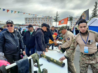 В этот день члены местного отделения «БОЕВОГО БРАТСТВА» организовали выставку макетов оружия и военной экипировки времён Великой Отечественной войны и современной России.