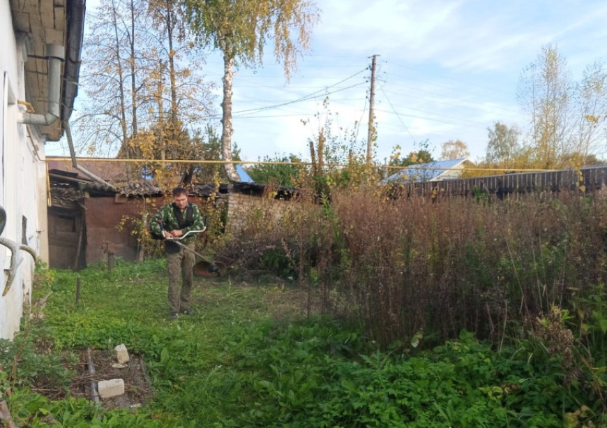 «Анна Григорьева является инвалидом и практически не выходит из дома. Проживает одна, родственников нет. Её посещает и ухаживает за ней работник социальной защиты, которая и обратилась за помощью в районный штаб «БОЕВОГО БРАТСТВА». На следующий день ветераны-общественники Олег Кербнев и Сергей Комаров обкосили придомовой участок и навели порядок около дома», — сообщили из Ивановской области.