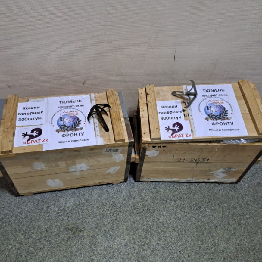 14 ноября тюменские предприниматели принесли в Тюменское областное отделение «БОЕВОГО БРАТСТВА» около 600 штук сапёрных кошек.