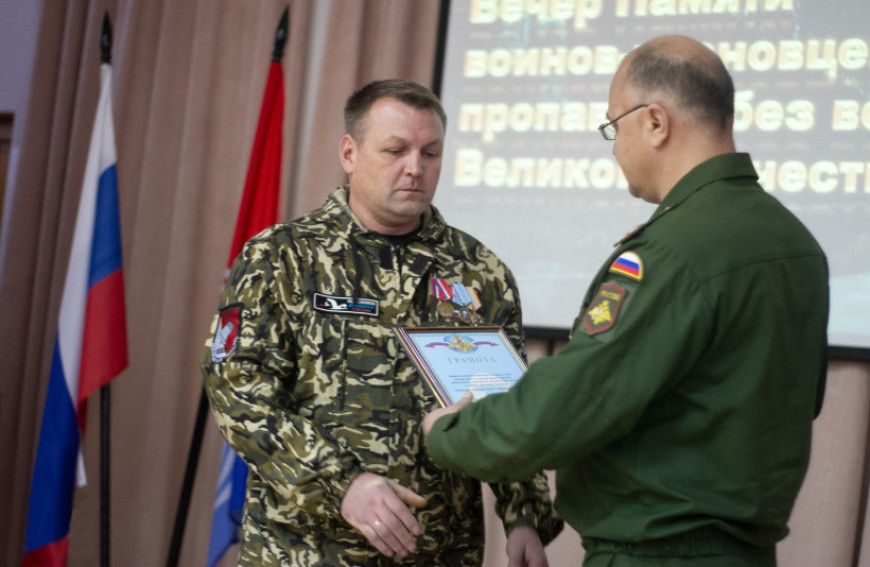 Начальник регионального штаба «Юнармии» Станислав Макутин вручил благодарственное письмо за деятельность по сохранению исторической памяти заместителю командира СПО «Эхо», ветерану приволжского «БОЕВОГО БРАТСТВА» Сергею Сухареву. Воспитаннику ВСК «Патриот» Валерию Кербневу было вручено удостоверение поисковика.
