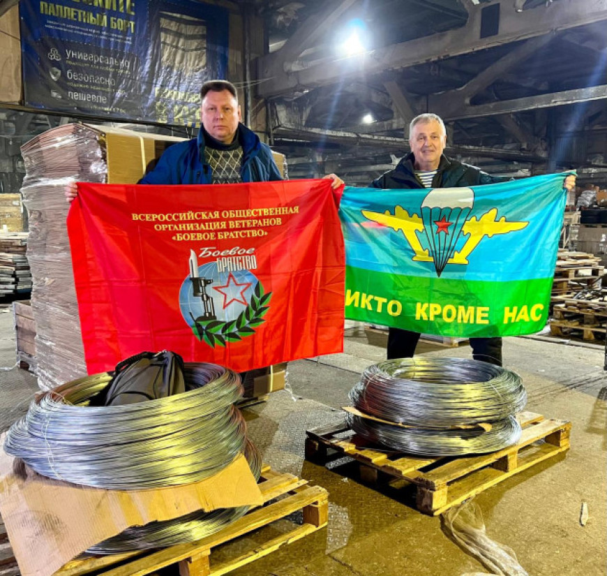19 ноября Свердловским областным отделением «БОЕВОГО БРАТСТВА» при непосредственном участии Сергея Белякова, Игоря Козлова и коммерческого директора ООО «Уралсталь» Александра Белоусова отправили в подразделения ВДВ 700 килограмм оцинкованной проволоки.