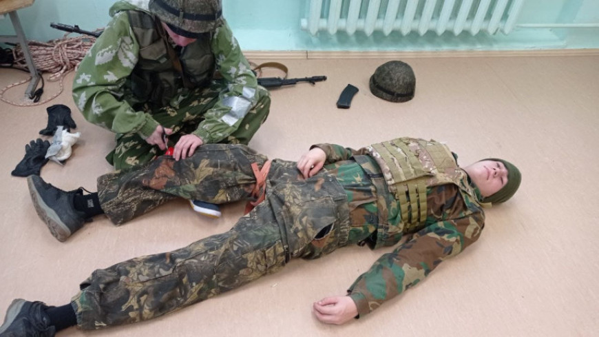 Отработаны навыки оказания первой медицинской помощи, раненым и пострадавшим от боевых действий: наложение жгута, повязки на рану и транспортировка раненых с поля боя.