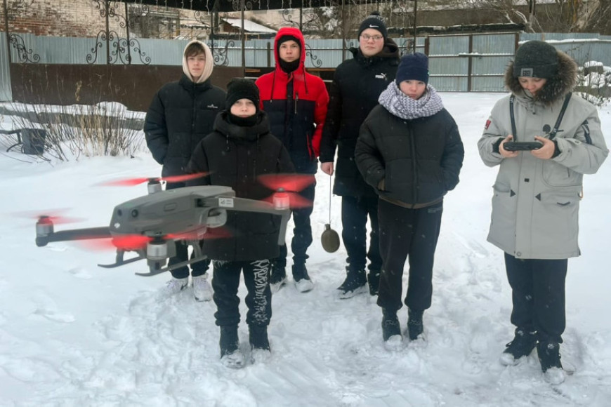 Каждый ученик после теоретической части и наглядной практики лично опробовал свои навыки в управлении дроном с элементами взлёта, посадки на определённую точку, разворотами, пунктом сброса и доставки груза.