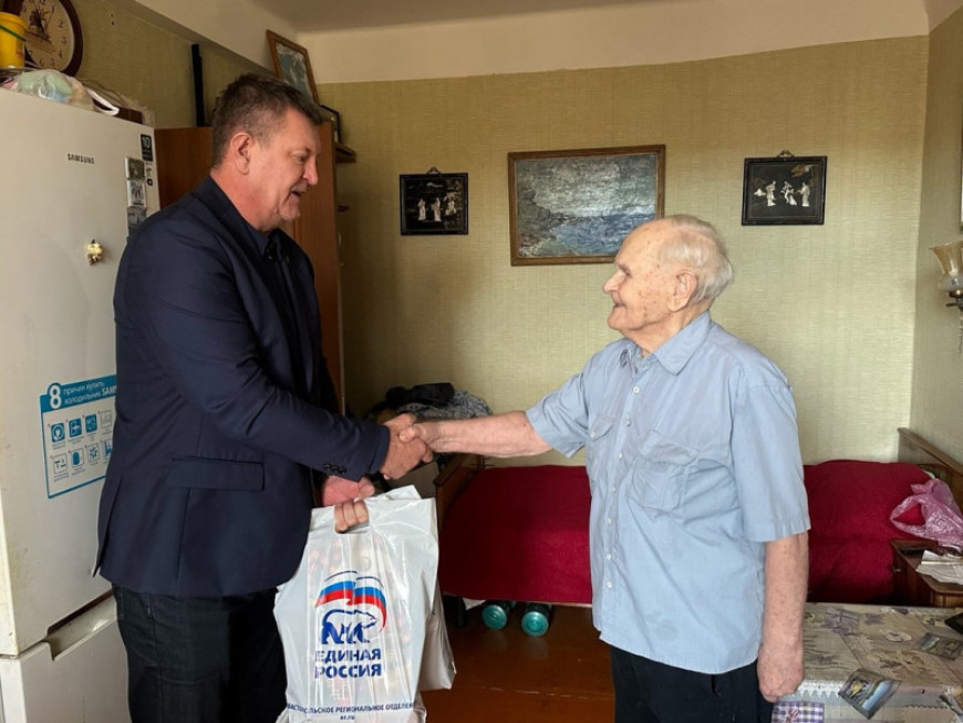Они вручили поздравительные открытки и подарочные наборы ветеранам Великой Отечественной войны Алексею Николаевичу Хромову и Анне Григорьевне Пекарниковой.