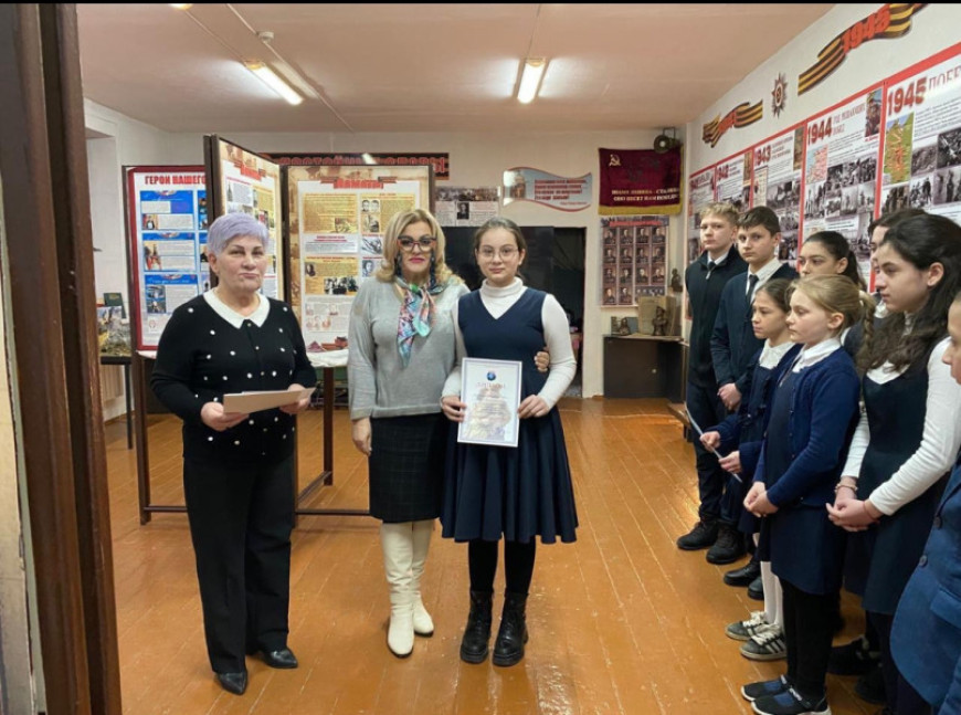 Дипломы вручала член «БОЕВОГО БРАТСТВА», председатель Совета матерей военнослужащих Залина Моураова. Более 100 учащихся были отмечены дипломами, подписанными депутатом Государственной думы, заместителем председателя Всероссийской общественной организации «БОЕВОЕ БРАТСТВО» Дмитрием Саблиным.