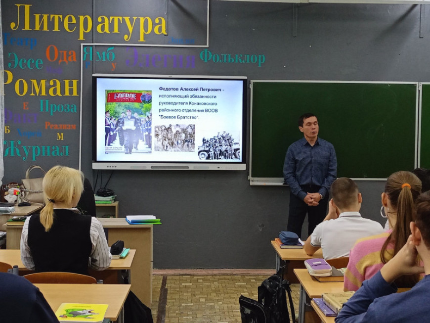 23 января в Конакове и.о. руководителя Конаковского «БОЕВОГО БРАТСТВА» Алексей Федотов и заведующий отделом молодежной политики администрации округа Елена Кищик провели беседу с 29 учащимися школы №7.