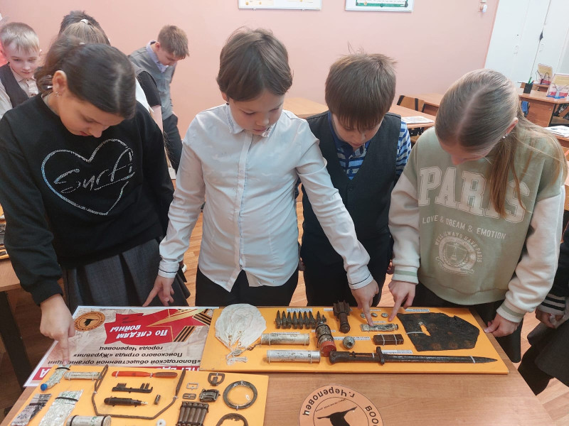 Ученики изучили выездную выставку «По следам войны».