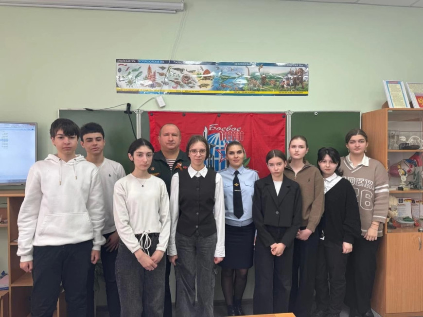 В школе №7 имени Героя России Карена Шишкина в Моздоке член правления Моздокского местного отделения «БОЕВОГО БРАТСТВА» Юрий Нечитайлов провел рок мужества «Есть такая профессия – Родину защищать!».