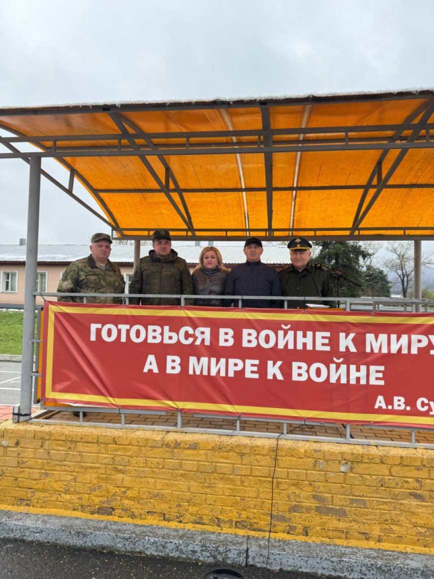 Торжественный митинг открыл командир дивизии, полковник Руслан Караев. Перед присутствующими выступили члены «БОЕВОГО БРАТСТВА » Александр Ушаков и Залина Моураова.
