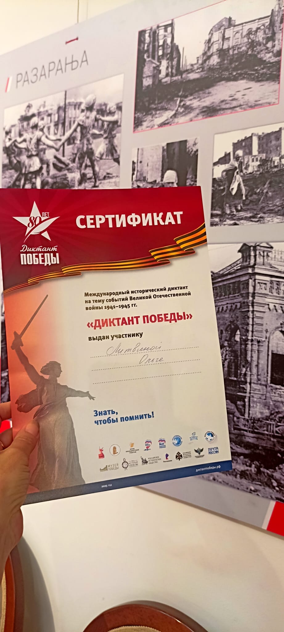25 апреля представитель «БОЕВОГО БРАТСТВА» в Сербии Ольга Литвина участвовала в «Диктанте Победы», организованном «Русским Домом» в Белграде. В Диктанте приняли участие сербские активисты и ученики русской школы в Сербии при посольстве Российской Федерации.