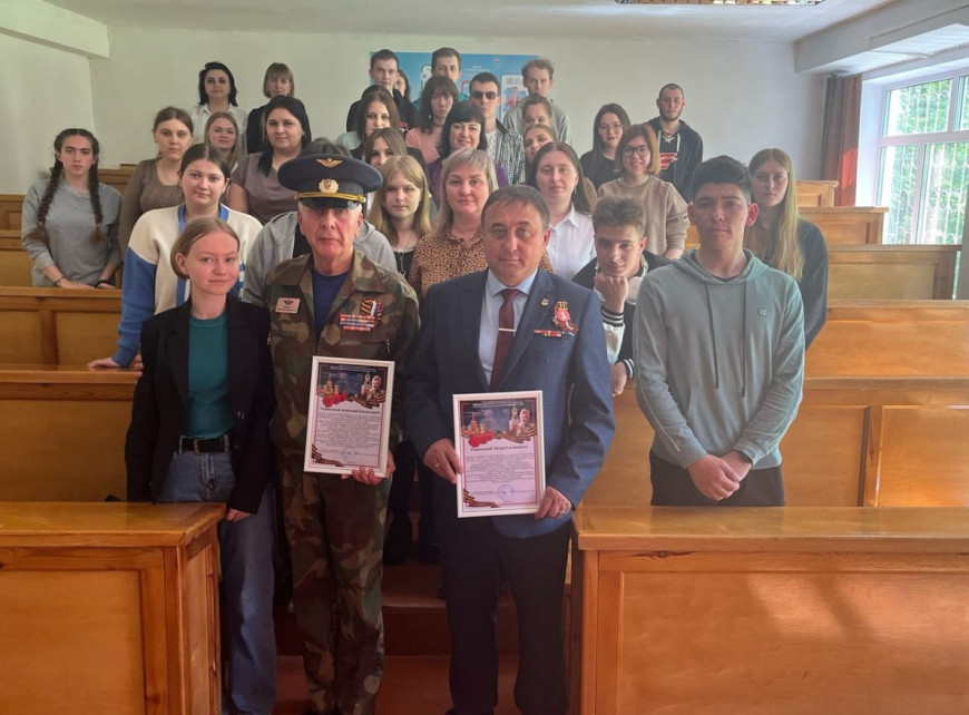 Ветераны рассказали студентам о своем боевом опыте, о важности поддержки ветеранов Специальной военной операции, а также поговорили о 80-й годовщине победы в Великой Отечественной войне и ответили на вопросы студентов.