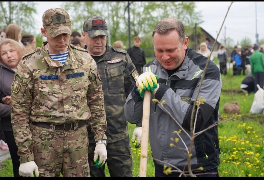 20 мая в Нижнем Тагиле представители «БОЕВОГО БРАТСТВА» во главе с руководителем отделения, ветераном СВО Андреем Малининым приняли участие в посадке деревьев на аллее Героев специальной военной операции у городского Дворца детского и юношеского творчества.