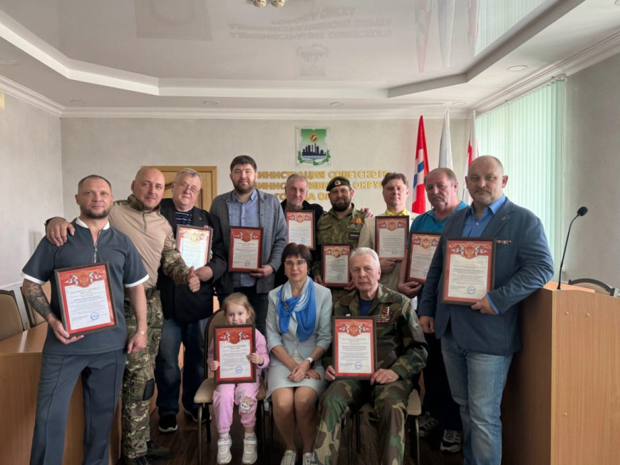 30 мая в администрации Советского округа Омска прошла церемония награждения ветеранов боевых действий. Членов «БОЕВОГО БРАТСТВА» наградили благодарственными письмами за активное участие в мероприятии, посвященном празднованию 80-й годовщины Победы в Великой Отечественной войне, которое прошло на территории округа. Награждение провела заместитель главы администрации Светлана Олифер.